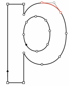 Most fonts use a sequence of Beziér splines to describe the outline of each glyph. Specifically, TrueType fonts use splines composed of quadratic (2nd order) Bézier curve segments, while PostScript Type 1 and OpenType fonts can use cubic (3rd order) segments. To keep the discussion simple, I’ll only talk about quadratic Beziérs here.