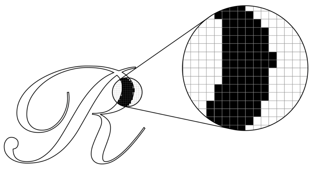 It’s worth noting that even if we have numerically robust solutions for finding inside-outsideness, that’s not quite enough to render smooth text. If the decision at the pixel level is binary (in/out, black/white), then glyphs will appear jagged or pixellated.